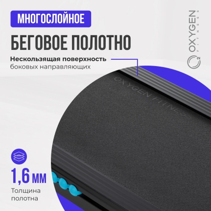 Антискользящее беговое полотно толщиной 1.6 мм обеспечивает надежное сцепление обуви с поверхностью, что снижает риск травмирования суставов. Размер бегового полотна 140*52 см предоставляет достаточно пространства для комфортных и свободных движений во время тренировок, что особенно важно для длительных тренировочных сессий, позволяя сосредоточиться на достижении целей без дискомфорта.