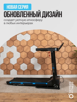 OXYGEN FITNESS MANGAN B — это компактная и мощная домашняя беговая дорожка, созданная для пользователей, которые хотят заниматься спортом с комфортом у себя дома. С мощным двигателем Fuji Electric на 2.0 л.с. (с пиковым значением 3.6 л.с.), MANGAN B обеспечивает плавный бег и скорость до 16 км/ч, что идеально подходит для пользователей весом до 120 кг. Легкая механическая регулировка угла наклона (от 1% до 3%) позволяет имитировать легкий подъем и добавлять разнообразие в тренировку.