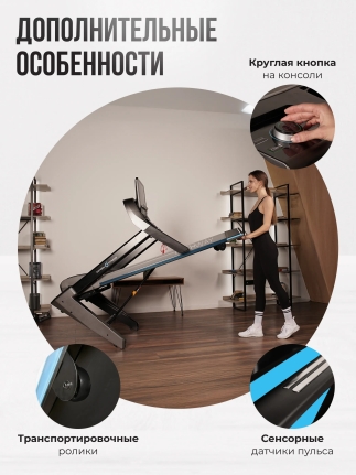 сенсорные датчики на поручнях, возможность подключения кардиодатчика Bluetooth через фитнес-приложения