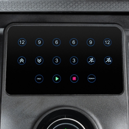 кнопки быстрого управления на консоли (уровень наклона, скорость), сенсорные датчики на поручнях, возможность подключения кардиодатчика Bluetooth через фитнес-приложения