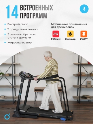 Беговая дорожка OXYGEN FITNESS REVIVE C — ваш надежный партнер на пути к здоровью и физической активности, обеспечивающий комфорт, безопасность и разнообразие в тренировках!