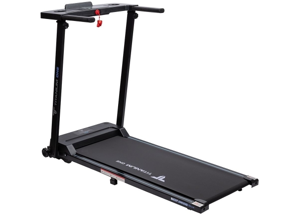 За движение отвечает надежный двигатель пиковой мощности 2 л.с. постоянный ток. Скорость регулируется в пределах от 1 до 8 км/ч - на максимуме этого вполне хватает для легкого бега. Размеры бегового полотна составляют 101 см. в росте и 40 см. в подвеске - обеспечивает комфорт и безопасность при ходьбе и беге на любых скоростях, включая максимальные. Несмотря на небольшие размеры бегового полотна, тренироваться на Titanium One T25 Special blue можно с ростом роста до 190 см, но есть ограничение по максимальному весу пользователя - 120 кг. Если придавать этому значение, следует обратить внимание на модели уровня выше.