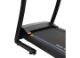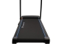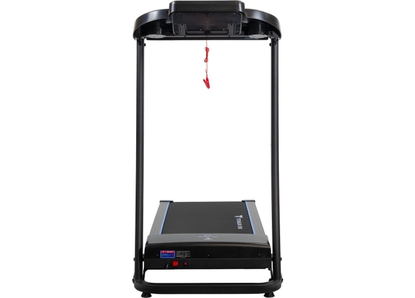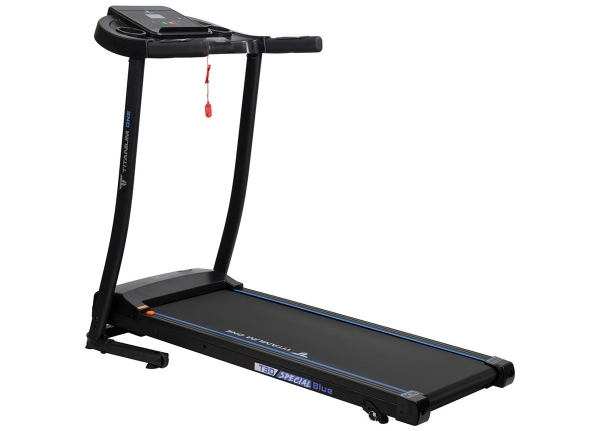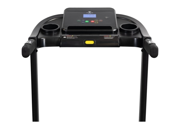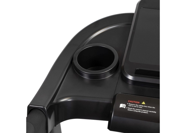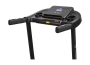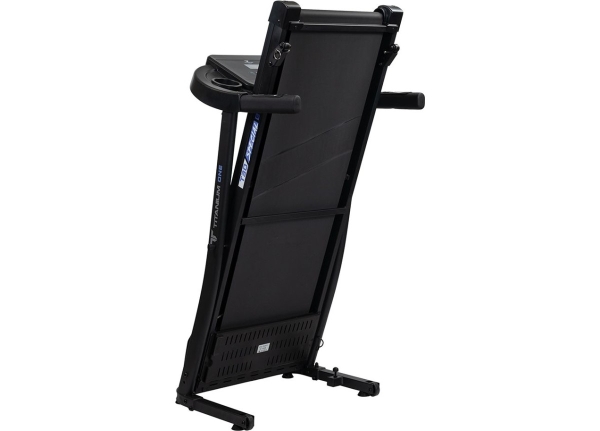 Тренировочный представлен синим многофункциональным дисплеем компьютера диагональю дюймов (7,6 см). На экране одновременно выводятся все основные параметры тренировки — время, скорость, дистанция, целевые калории и пульс. В программный пакет входят 12 предустановленных программ, направленных на тренировку скоростных качеств, выносливости, сердечно-сосудистой системы и похудания. Помимо предустановленных программ, можно воспользоваться программами обратного отсчета дистанции, времени или затраченных калорий. Для считывания показаний пульса в поручни дорожки вмонтированы контактные сенсорные датчики. Благодаря быстрым клавишам управления на поручнях можно регулировать скорость, не снимая рук с поручней, а также включать или выключать тренажёр. Разнообразить тренировку поможет выдвижная составляющая – в консоли установлены колонки мощностью 3 Вт, а с помощью наушников аудиофайлов выводится MP3-плеер или смартфон. Перемещение дорожки происходит за счет 2-х транспортировочных роликов.