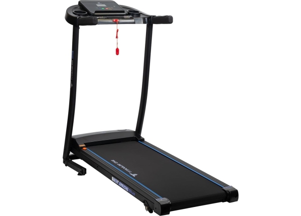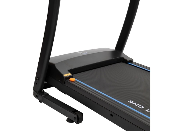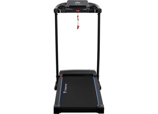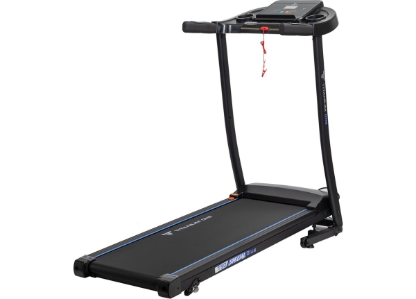За движение отвечает надежный двигатель пиковой мощности 2 л.с. постоянный ток. Скорость регулируется в пределах от 1 до 12 км/ч - на максимуме этого вполне хватает для бега начинающих и продвинутых спортсменов. Размеры бегового полотна составляют 112 см. в росте и 40 см. в подвеске - обеспечивает комфорт и безопасность при ходьбе и беге на любых скоростях, включая максимальные. Угловой наклон регулируется механически (вручную) и имеет три положения. Несмотря на небольшие размеры бегового полотна, тренироваться на Titanium One T30 Special blue можно с ростом роста до 190 см, но есть ограничение по максимальному весу пользователя - 120 кг. Если придавать этому значение, следует обратить внимание на модели уровня выше. Амортизация, настроенная на средний уровень жесткости, обеспечивается 4-мя резиновыми ножками системы Softwave+™ и двумя 2 плоскими эластомерами EasyRubb™. Это базовая амортизация, она в состоянии погасить часть ударной нагрузки на суставы и минимизировать уровень шума. Для тренировки большинства пользователей, не испытывающих проблем с суставами, при наличии качественной спортивной обуви будет обеспечен уровень амортизации. За качество скольжения отвечает многослойное полотно Diamond™ толщиной 1,6 мм швейцарского бренда Habasit и парафинированная дека толщиной 15 мм. Для изготовления дополнительной мягкости лучше использовать коврик или специально предназначенный для этого полиуретановый коврик для фитнес-оборудования.
