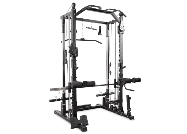 OXYGEN FITNESS TREVIS - это универсальный силовой комплекс с полноценной машиной Смита, созданный для эффективных домашних тренировок с функционалом профессионального уровня. Конструкция работает со свободными весами и обеспечивает безопасное выполнение десятков упражнений: от жима и приседаний до тяг, кроссоверных движений и тренировок корпуса. Максимальная нагрузка — 250 кг, что делает комплекс подходящим как для продвинутых спортсменов, так и для тех, кто строит свою силовую базу дома. Основу комплекса составляет усиленная рама прямоугольного профиля 70×50 мм с толщиной металла 2 мм, обеспечивающая жёсткость, устойчивость и плавный ход всех узлов. Габариты: 125 × 186 × 216 см. Вес нетто - 117 кг. Комплекс оснащён: • надёжным грифом машины Смита диаметром 50 мм, • ограничителем движения грифа, • 31 уровнем регулировки по высоте, позволяющими точно подстроить рабочую зону, • накопителями под диски Ø50 мм, • стаканом для хранения грифа, • 4 парами пружинных замков. В конструкции предусмотрены различные точки опоры: подставка для ног для горизонтальной тяги, упор для отжиманий, а также регулируемые валики для ног Ø80 мм (6 уровней настройки). Комплекс обеспечивает возможность выполнения тренировки всего тела благодаря широкому набору аксессуаров и функциональных зон: • рукоятки для верхней тяги, • две рукоятки кроссовера, • прямая рукоятка для тяг, • Т-гриф для станово-тяговых движений. Пользователь может выполнять: • приседания и жимы в машине Смита, • вертикальную и горизонтальную тягу, • упражнения на руки и плечи через кроссовер, • становую тягу, тягу Т-грифа, • отжимания, работу на мышцы спины, груди, рук и ног. Максимальный вес пользователя — 250 кг.