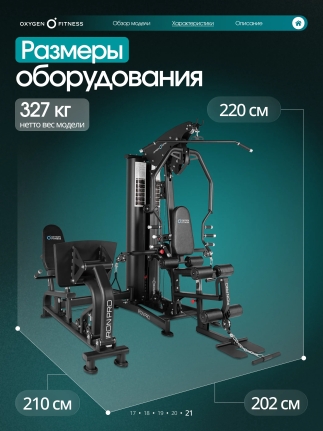 Такая гибкость настройки обеспечивает правильную биомеханику движений и повышает эффективность каждой тренировки. Оптимальные размеры Несмотря на расширенный функционал, тренажер сохраняет удобные габариты для размещения в фитнес-пространстве: длина — 210 см ширина — 202 см высота — 220 см