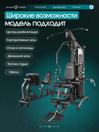 OXYGEN FITNESS IRON PRO — мощная многофункциональная силовая станция полукоммерческого уровня, разработанная для интенсивных тренировок и максимальной эффективности. Модель объединяет широкий спектр силовых упражнений и позволяет полноценно прорабатывать основные группы мышц: грудь, спину, плечи, руки и ноги. Благодаря расширенному функционалу и высокой надежности станция отлично подходит как для домашнего использования, так и для фитнес-студий, корпоративных залов и небольших спортивных клубов.
