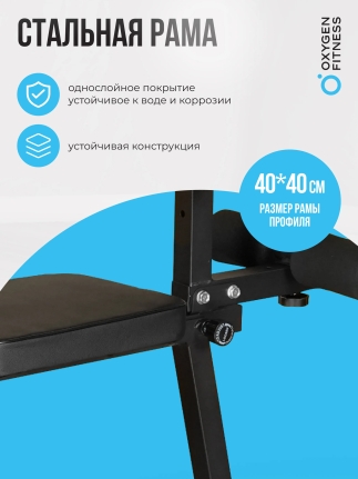 Скамья имеет прочный профиль рамы размером 40x40 мм, что гарантирует стабильность и безопасность во время тренировок. Удобные размеры скамьи позволяют легко выполнять различные упражнения, а возможность складывания делает ее удобной для хранения и транспортировки. С сиденьем размером 28x38 см и спинкой 61x28 см, OXYGEN FITNESS FOLDINGPRO обеспечивает достаточную площадь для комфортабельных тренировок. Складная скамья OXYGEN FITNESS FOLDINGPRO — это надежное и универсальное решение для достижения ваших фитнес-целей, обеспечивающее комфорт и эффективность во время тренировок в домашних условиях!