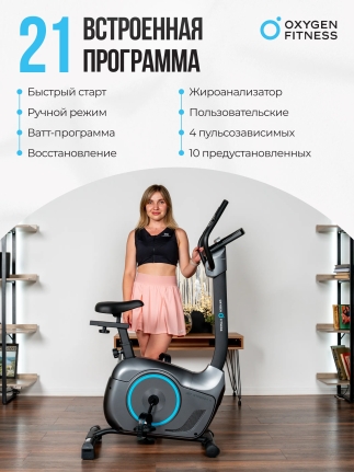 Велотренажер OXYGEN FITNESS JET STREAM A имеет 21 встроенную программу - включая быстрый старт, ручной режим, пользовательские программы, пульсозависимые программы, жироанализатор, ВАТТ, программы восстановления. Интеграционные технологии Bluetooth позволяют работать с тренировочным мобильным приложением (Kinomap™) и подключать телеметрический датчик измерения пульса (приобретается отдельно), что значительно расширяет возможности ваших тренировок.